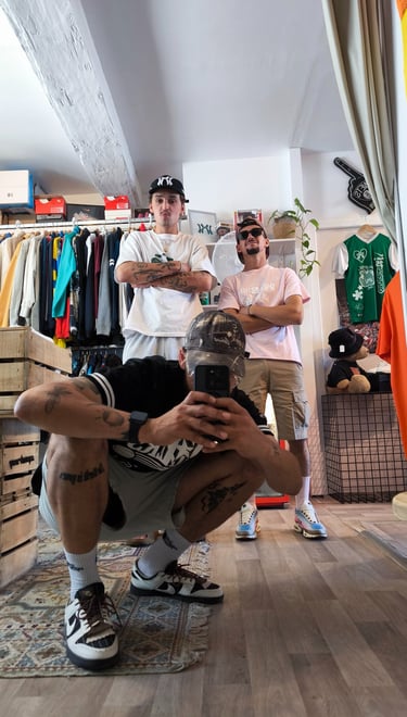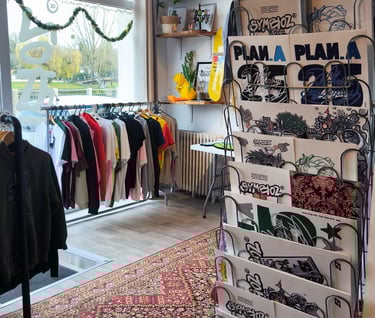 Né en 2025 sur les Quais de Saintes, Symbioz est fruit de l'association entre la marque indépendante Munchie et le magasin de seconde main Syndrom. Après presque un an d'activité Kojirugs se joindra au collectif pour compléter notre trio !